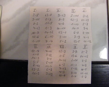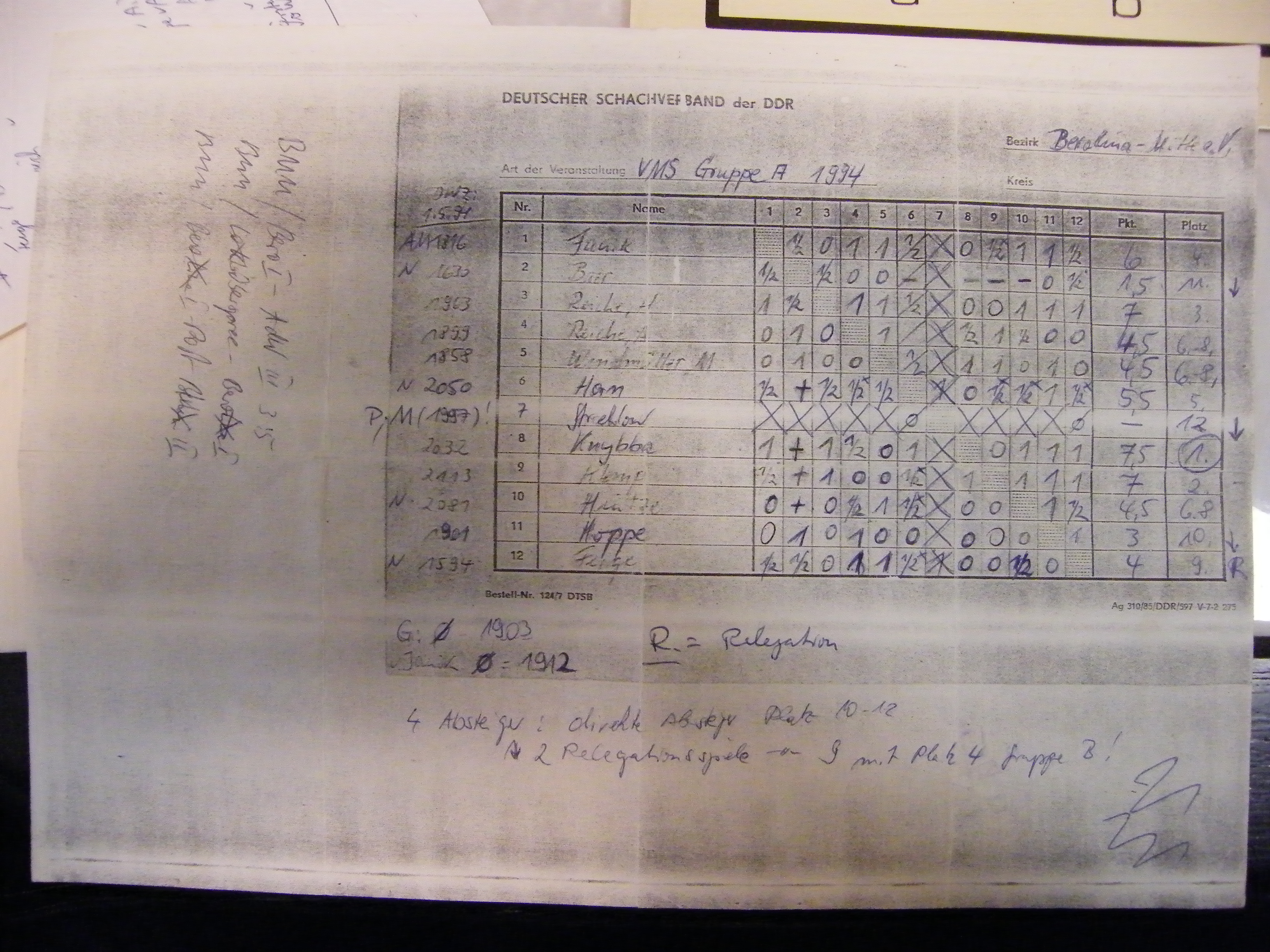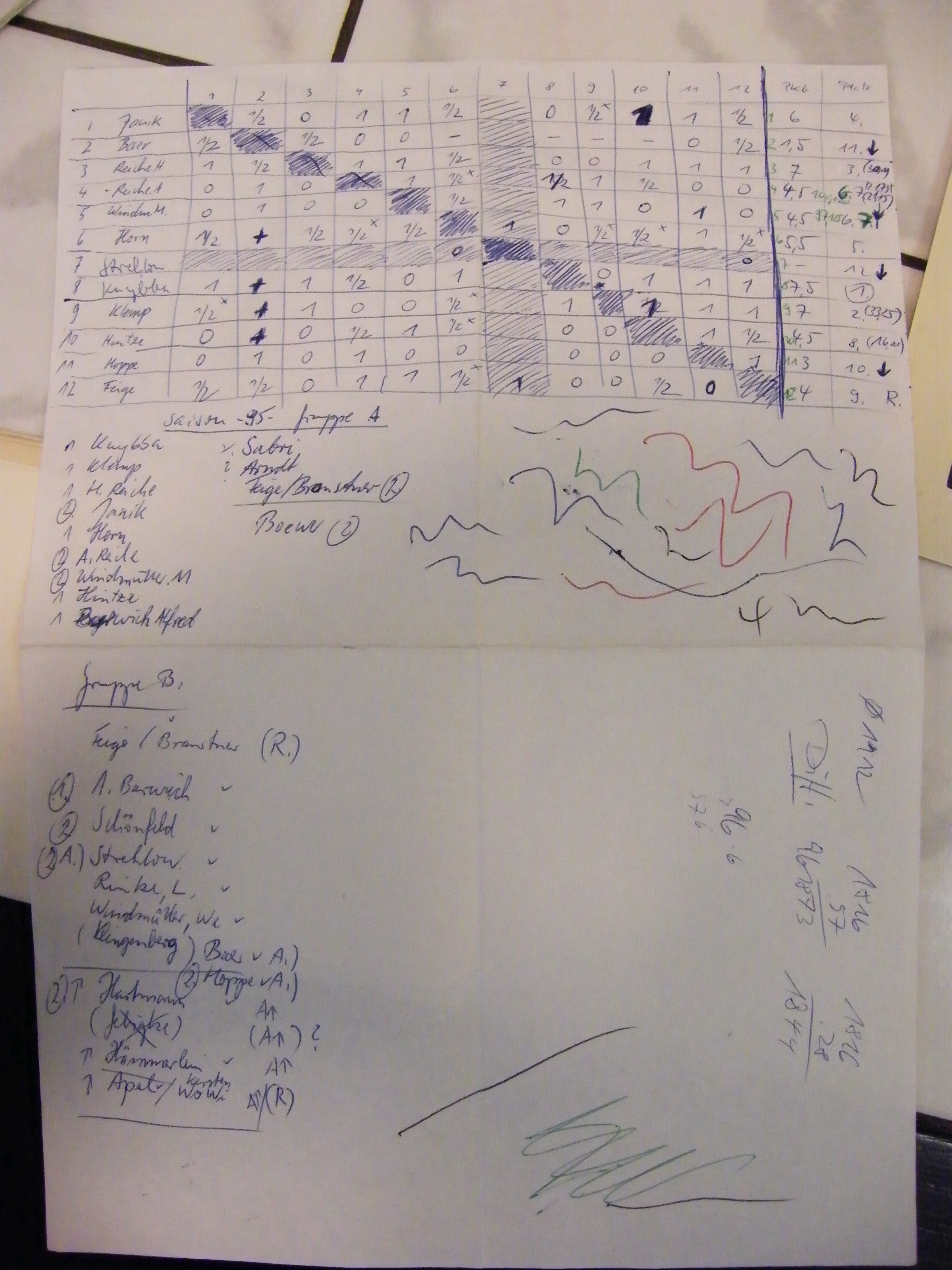 Faksimile der Tabelle Gruppe A 1994 und wahrscheinlich Vorausschau auf Saison 1995 -