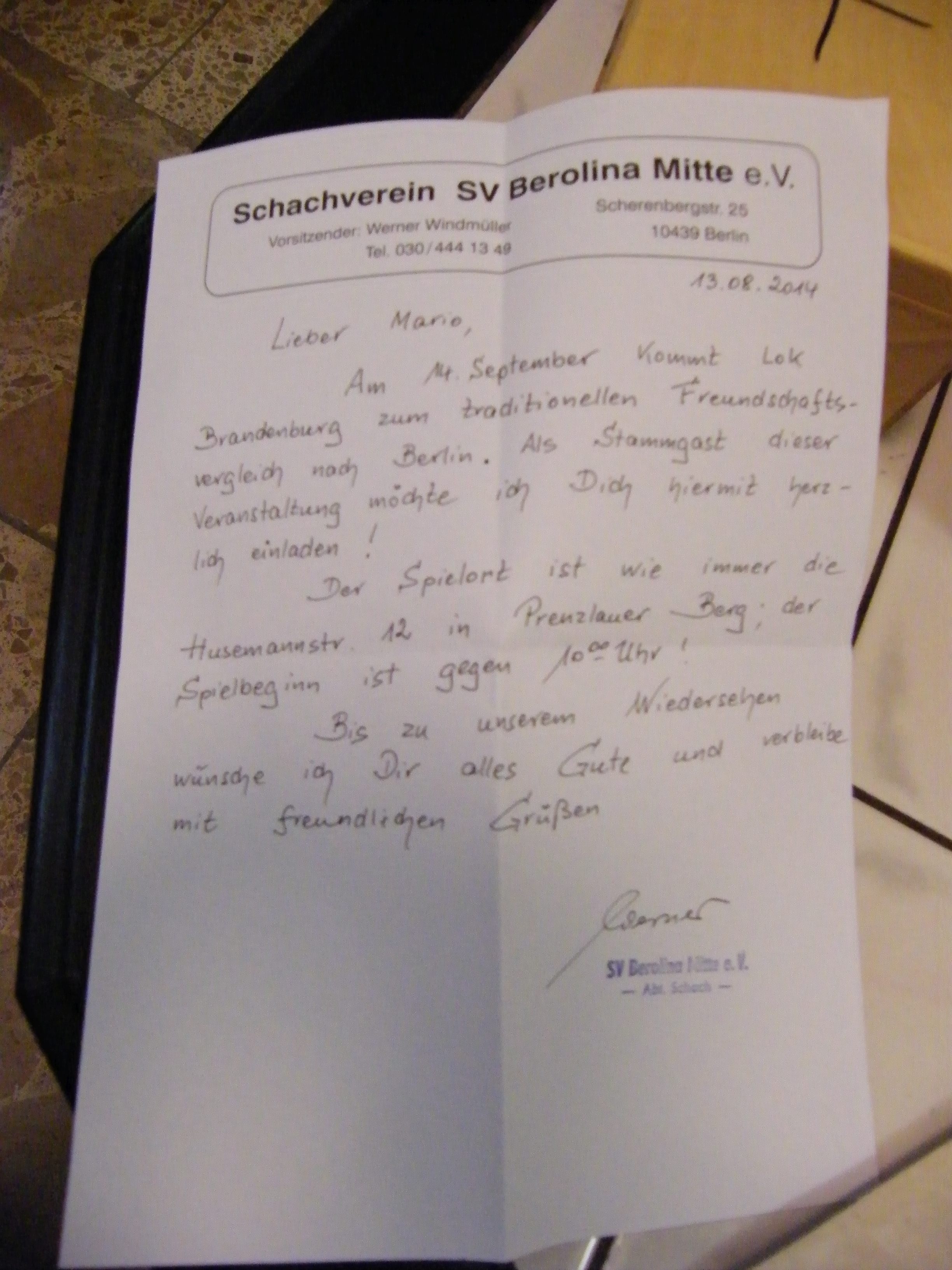 Siegerurkunde Mario Janik Aktivschachmeisterschaft 1990, signiert von Werner Windmüller -