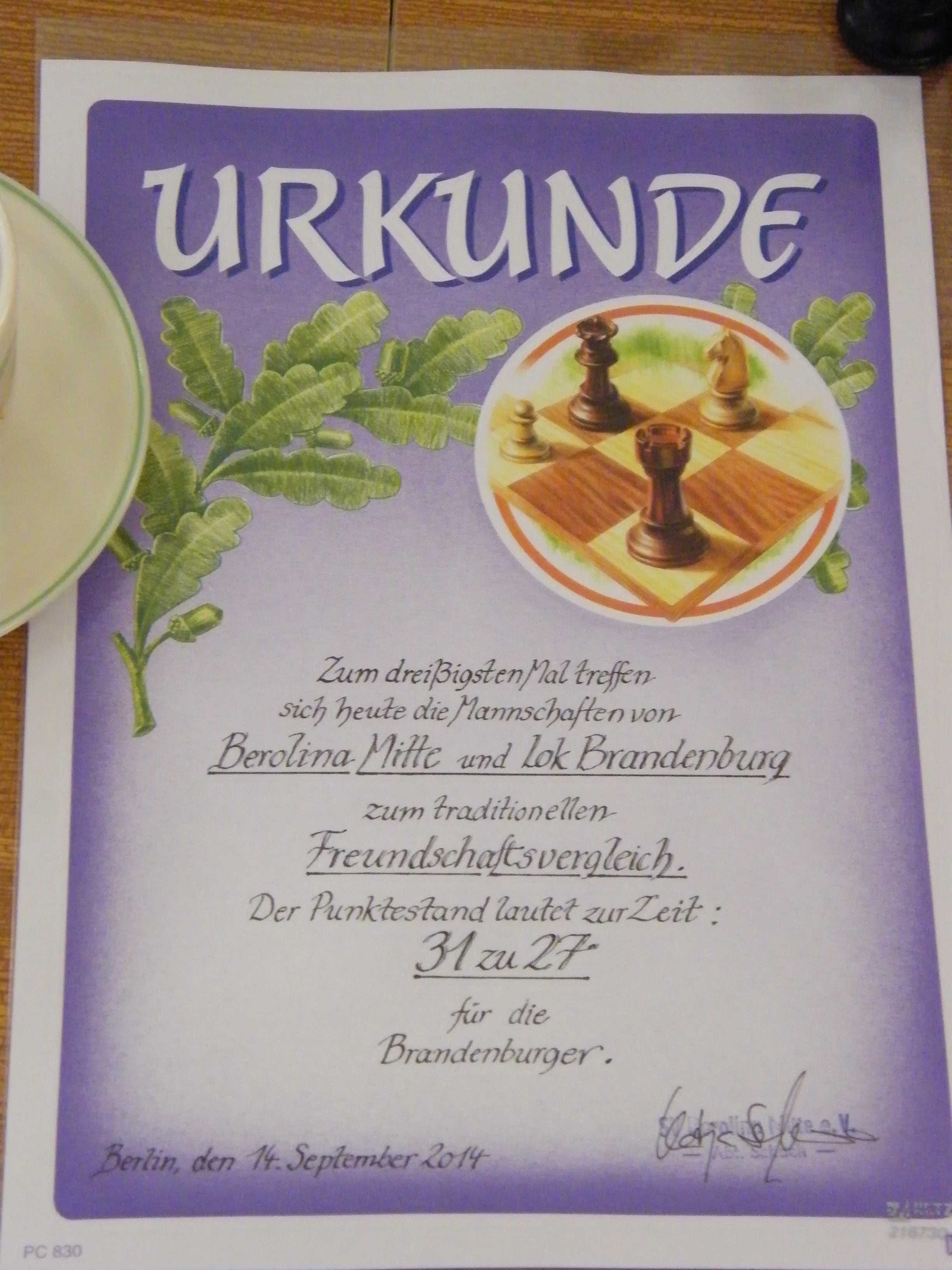 Siegerurkunde Mario Janik Aktivschachmeisterschaft 1993, signiert von Werner Windmüller -