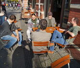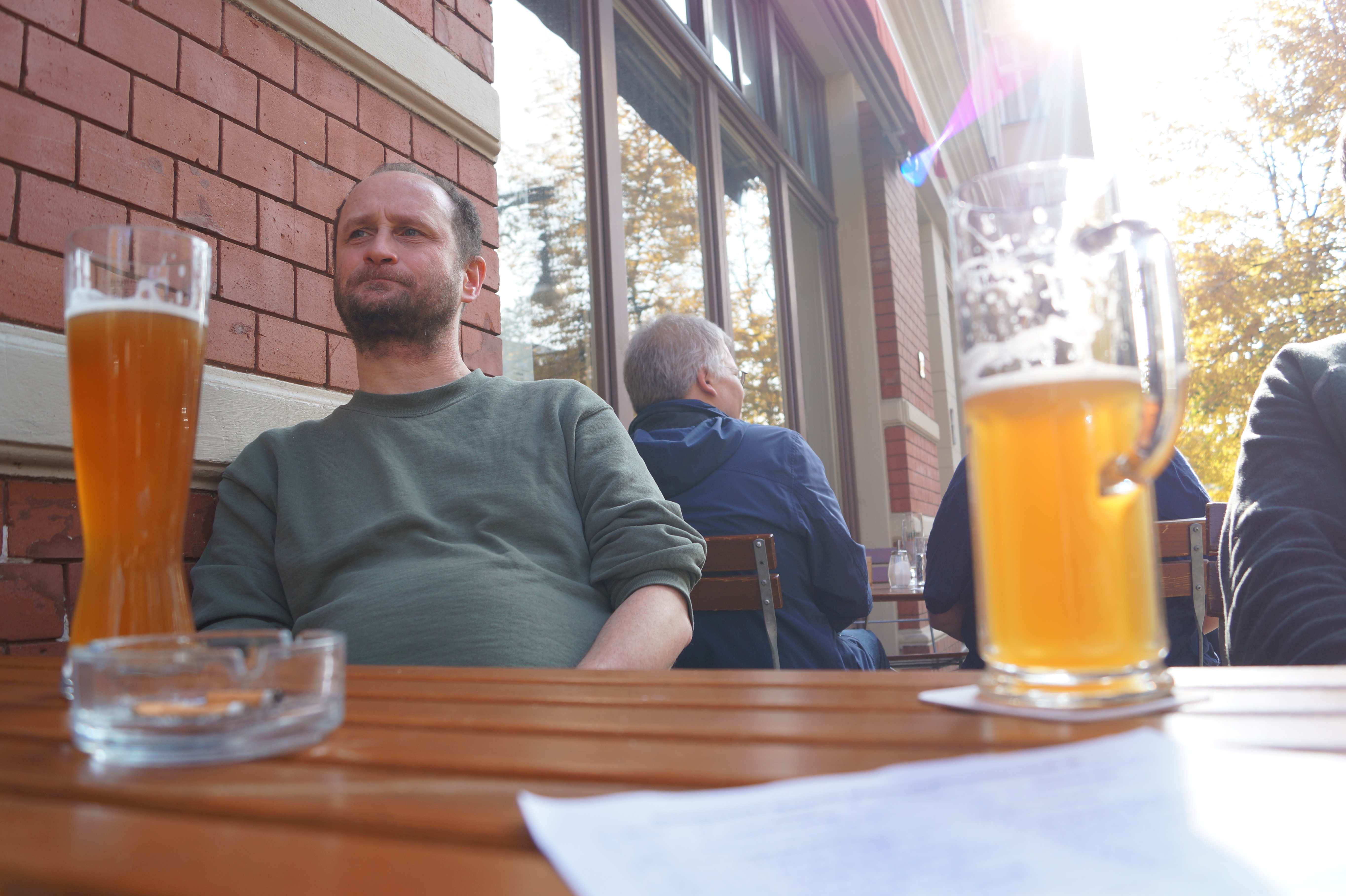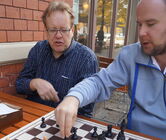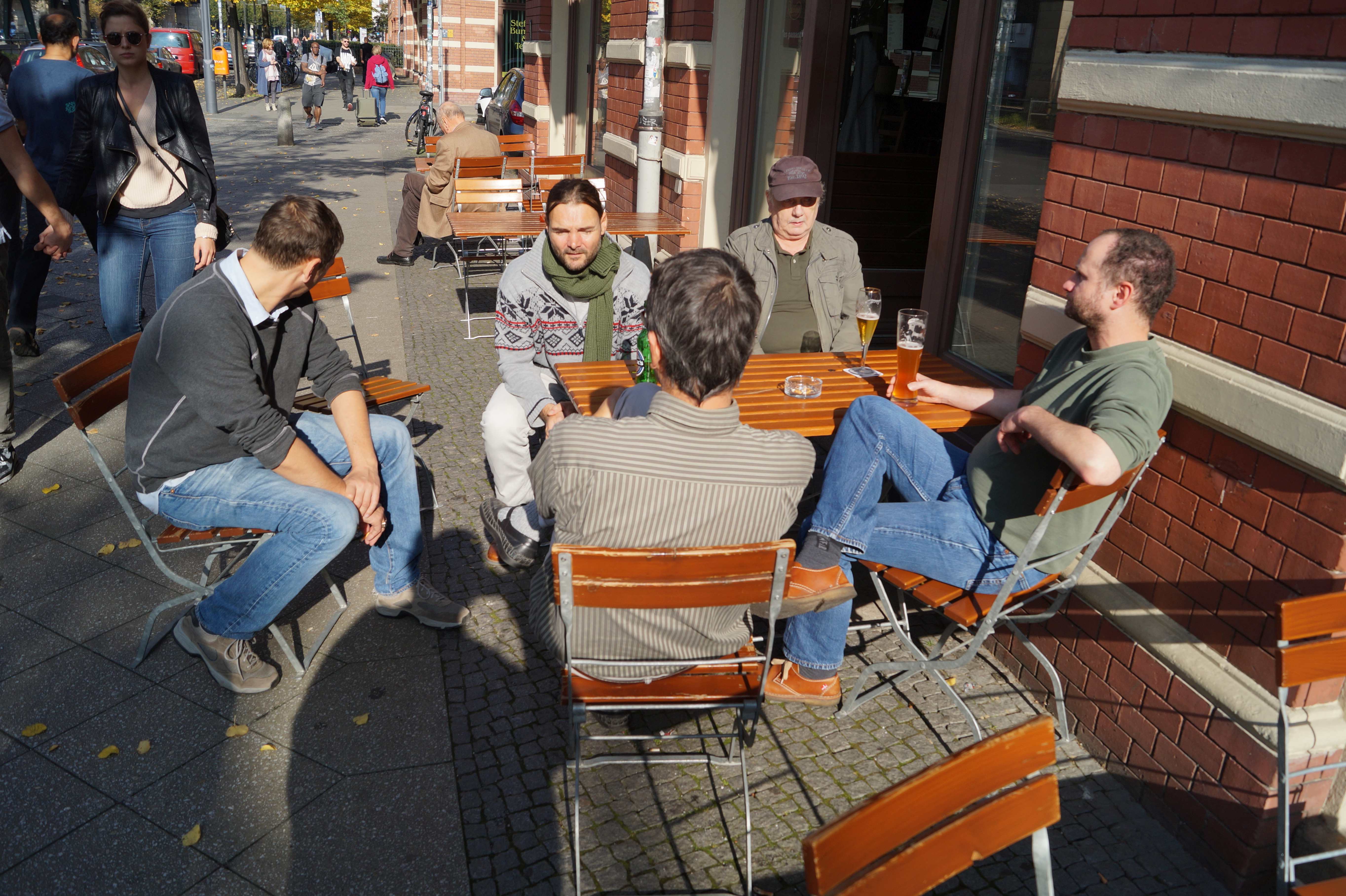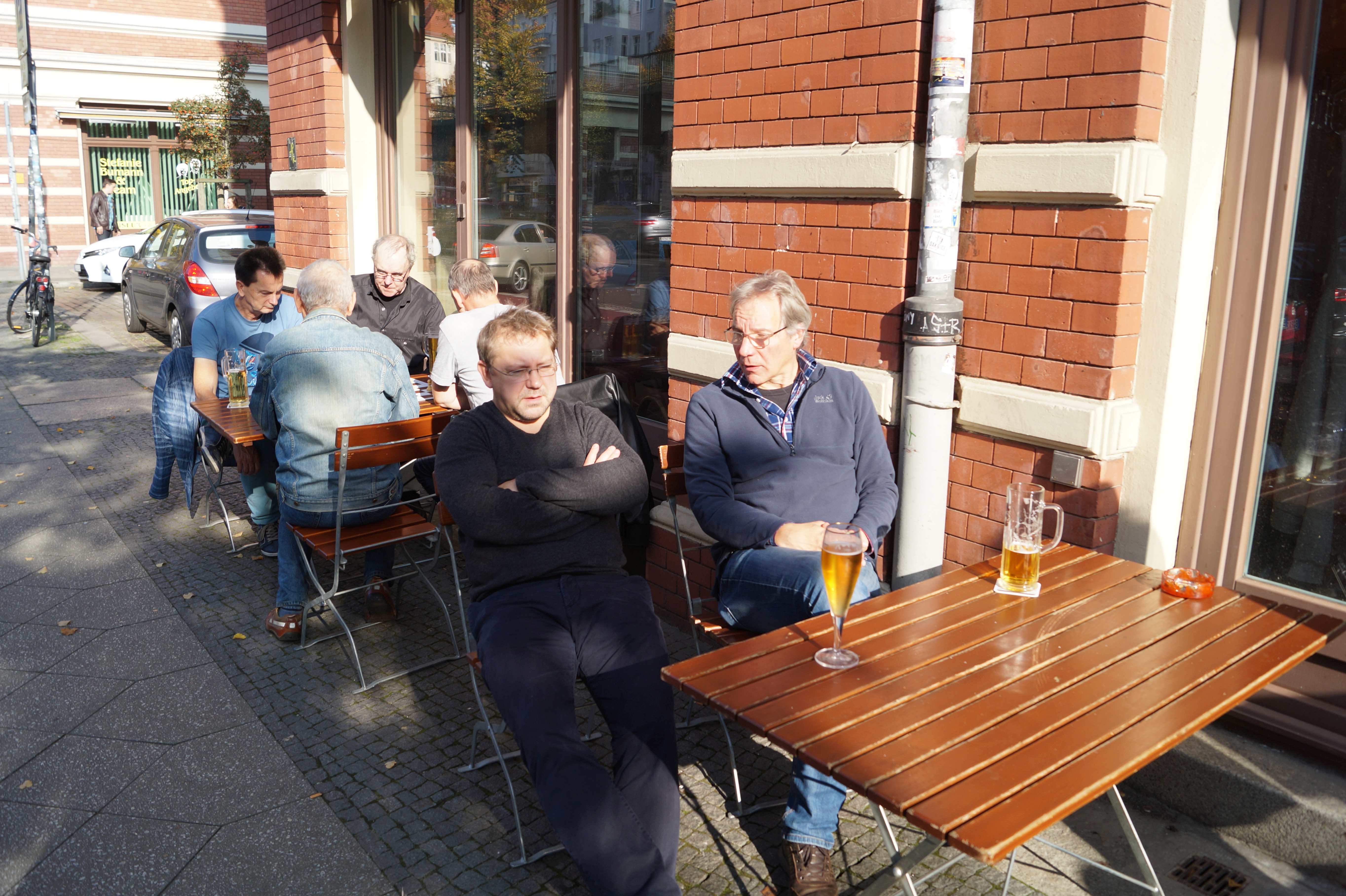 23 Tage nach dem kalendarischen Herbstanfang wird Berlin mitten im Oktober von einer Wärmeperiode heimgesucht. Bei 21-22 Grad stellte der Wirt die Stühle und Tische vor sein Café und wir konnten draußen unsere Partien analysieren und dabei dem Geratter der auf dem Hochbahnviadukt vorbeifahrenden U-Bahnen "lauschen". Heute soll es mit 23 Grad sogar noch ein bißchen wärmer werden.