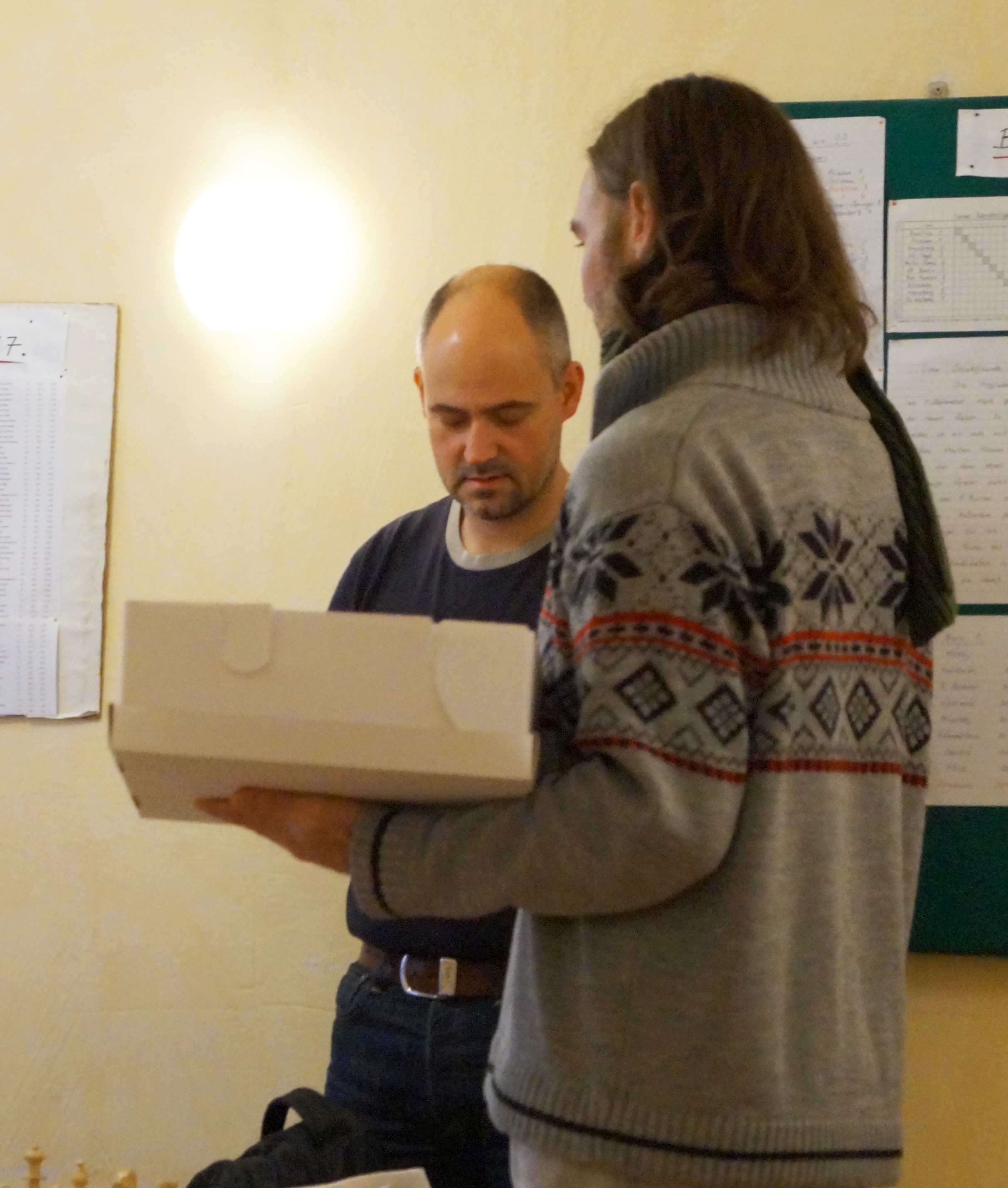 Sowas sollten wir dauerhaft einführen. Wer sein Debüt für Berolina macht und damit seinen Einstand feiert, der muß Kuchen mitbringen. Genau damit überraschte uns Marcus Fenner am gestrigen Sonntag zum Auftakt der BMM-Saison 2017/18. Da die Versorgung durch den "en passant"-Wirt so kurz vor 9 Uhr noch nicht sichergestellt war, freute ich mich natürlich über das Schokocroissant, welches ich Marcus aus den Händen riss. Danke Marcus!