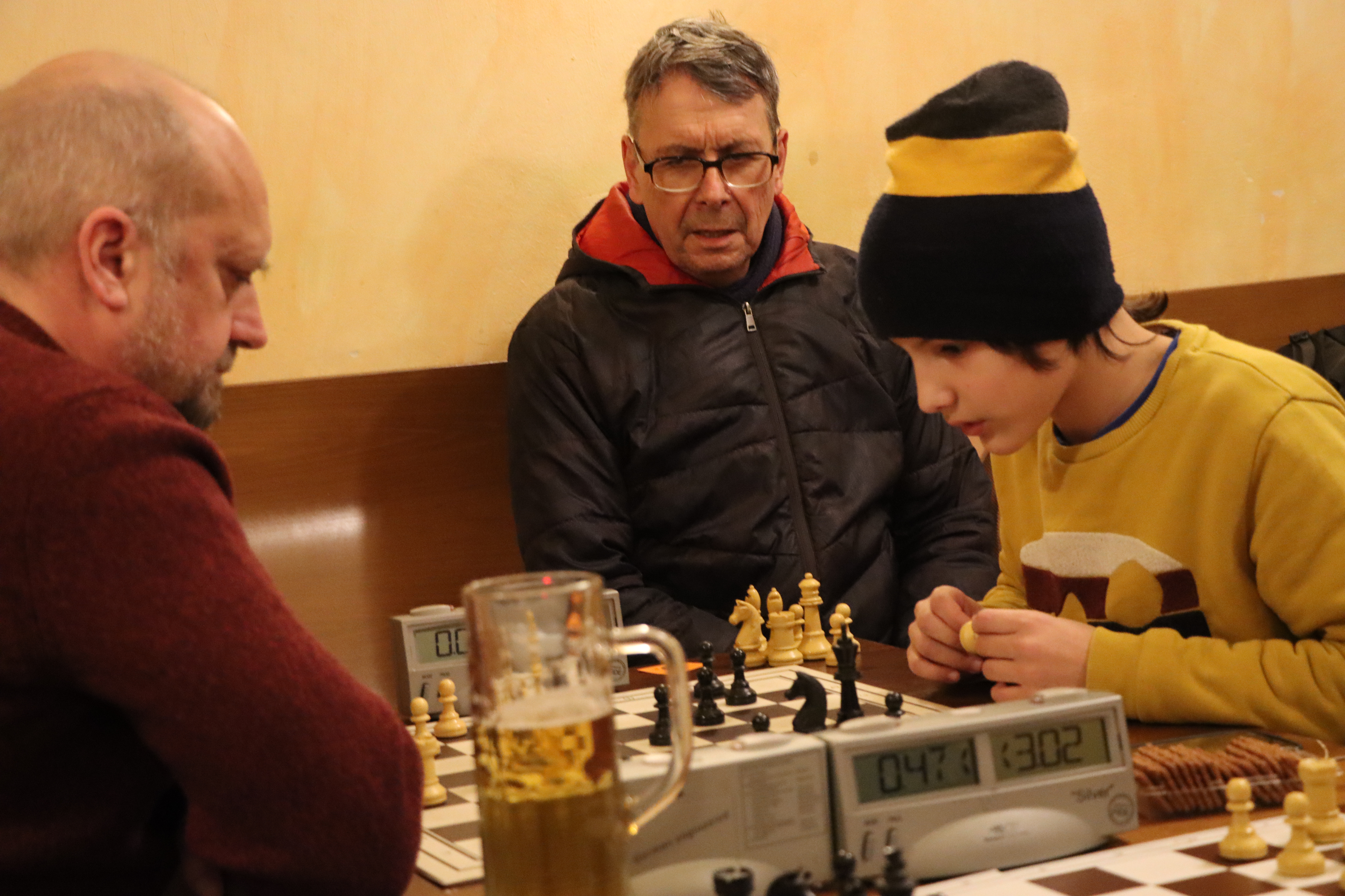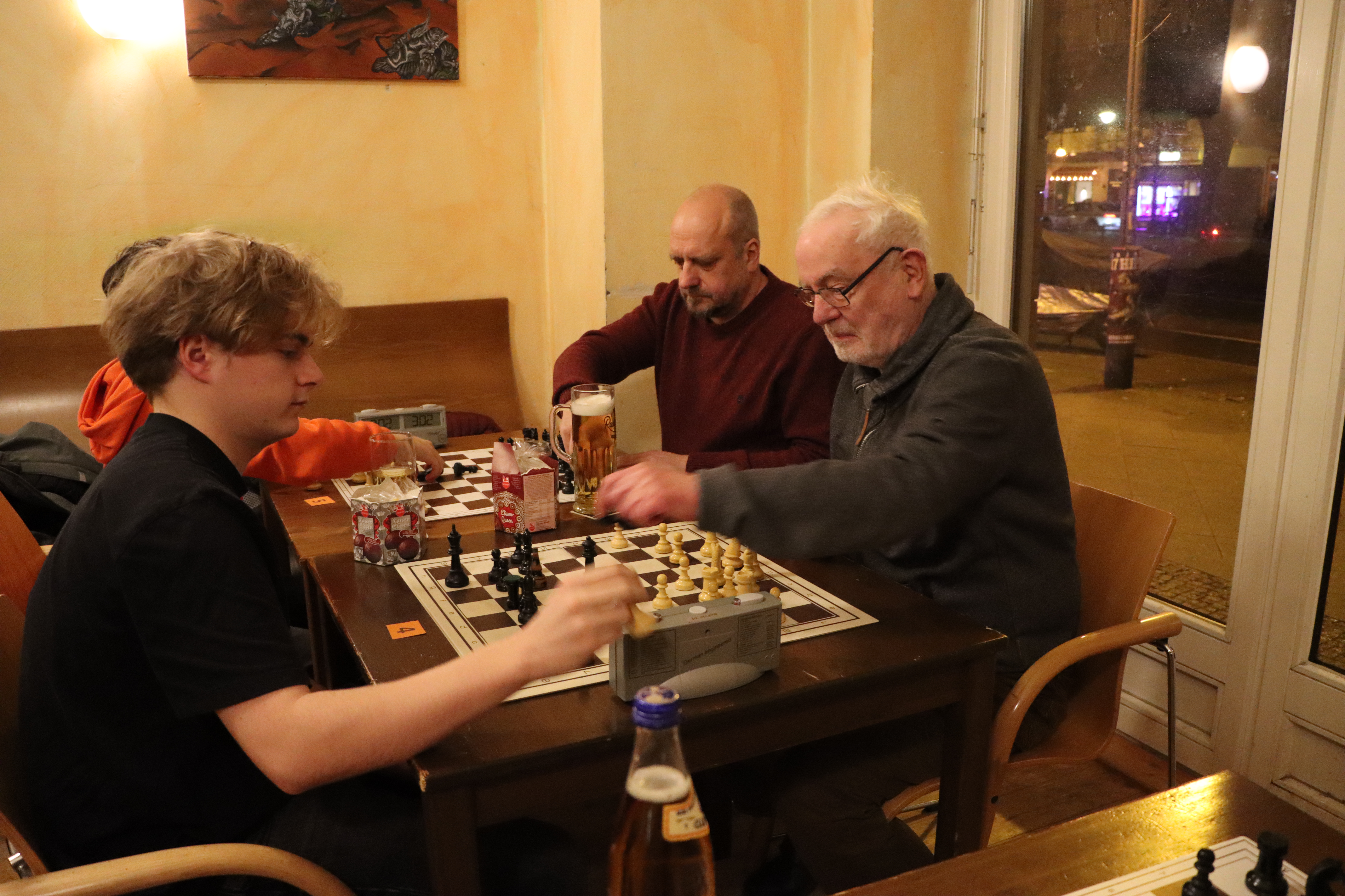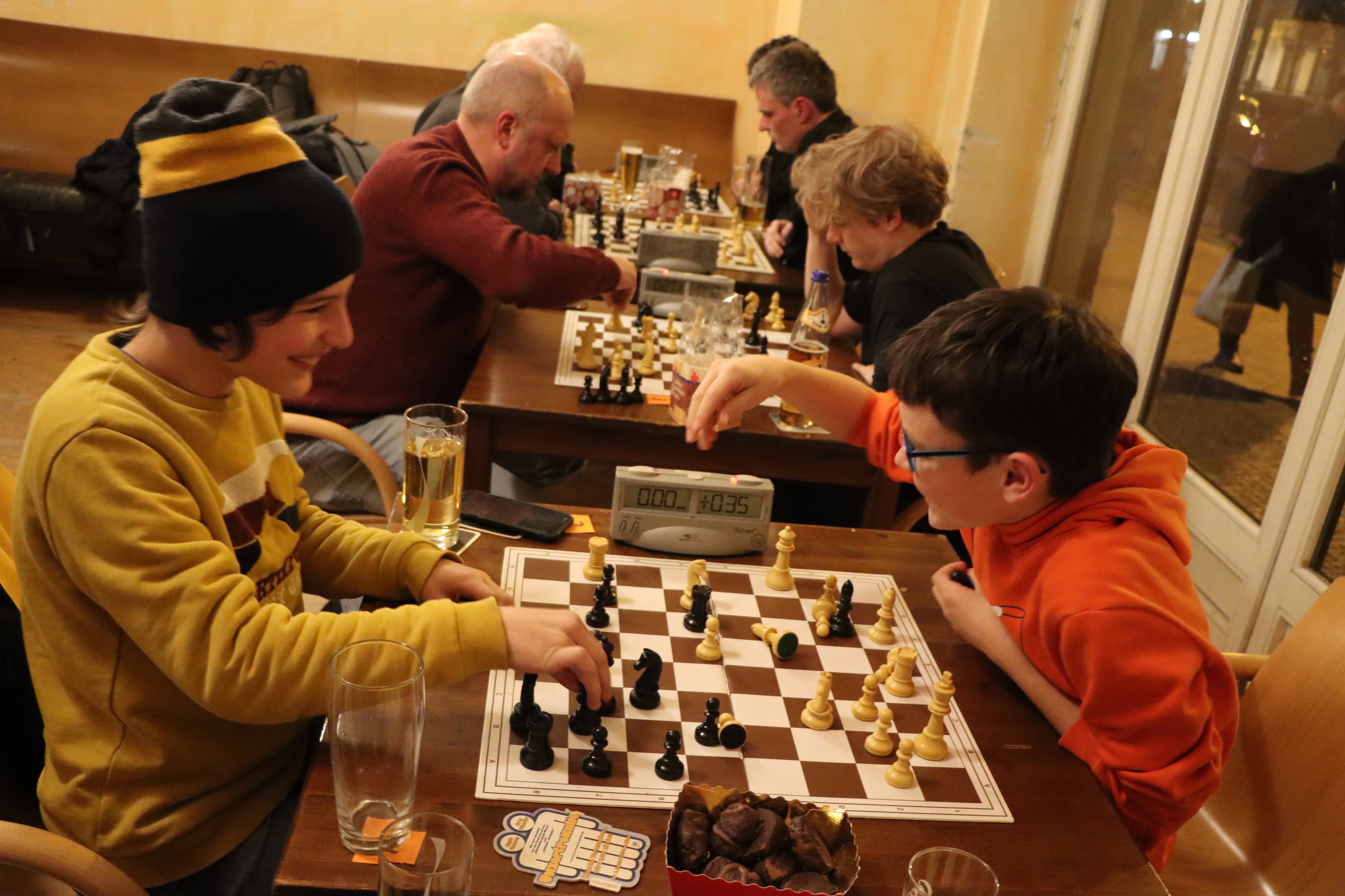 Das heutige Weihnachtsblitzturnier, nach Jens Rennspieß' Recherchen das erste seit 2022, fand leider nicht ganz so viele Teilnehmer. Dafür waren mit Lev Jozsa (11) und Tim Zussner (12) zwei starke Kinder dabei, die den erwachsenen Spielern das Fürchten lehrten. Tim führte nach vier Runden sogar mit 100%, zusammen mit Frank Binding und Theo Oldenburg. Binding, der früher Hoppe hieß, war der Turnierfavorit und besiegte in Runde fünf nicht nur Tim, sondern später auch Theo. Das war der Grundstein zum klaren Turniersieg mit 10½ aus 11, wobei Theo mit 10 Punkten nur hauchdünn hinter ihm blieb. Der Rest des Feldes folgte mit gehörigem Abstand.