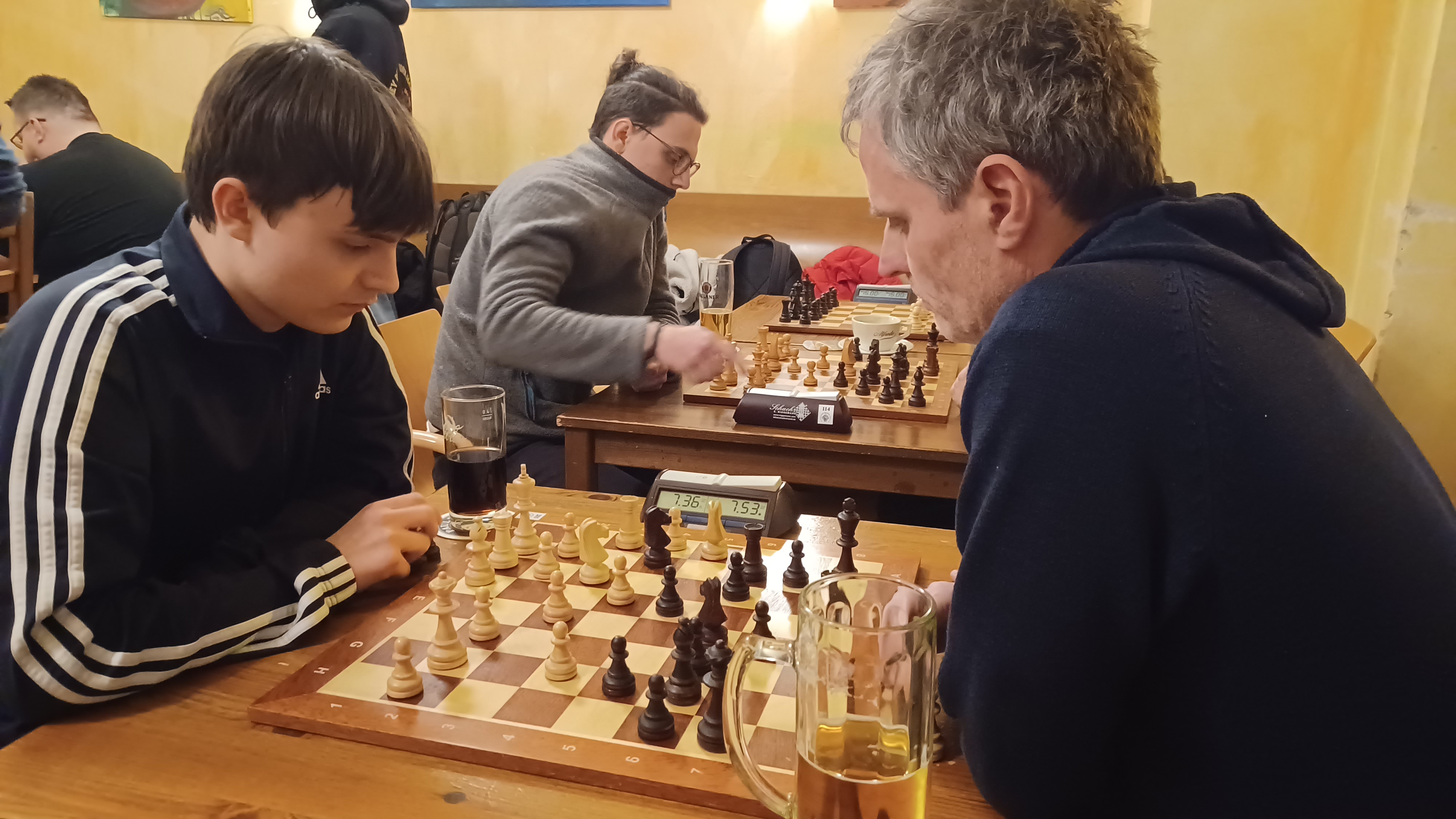 Jens Rennspieß und Wolfgang Vandré. Jens stand klar auf Gewinn, doch am Ende wurde es remis. -
