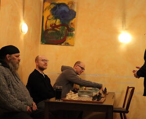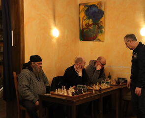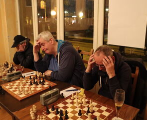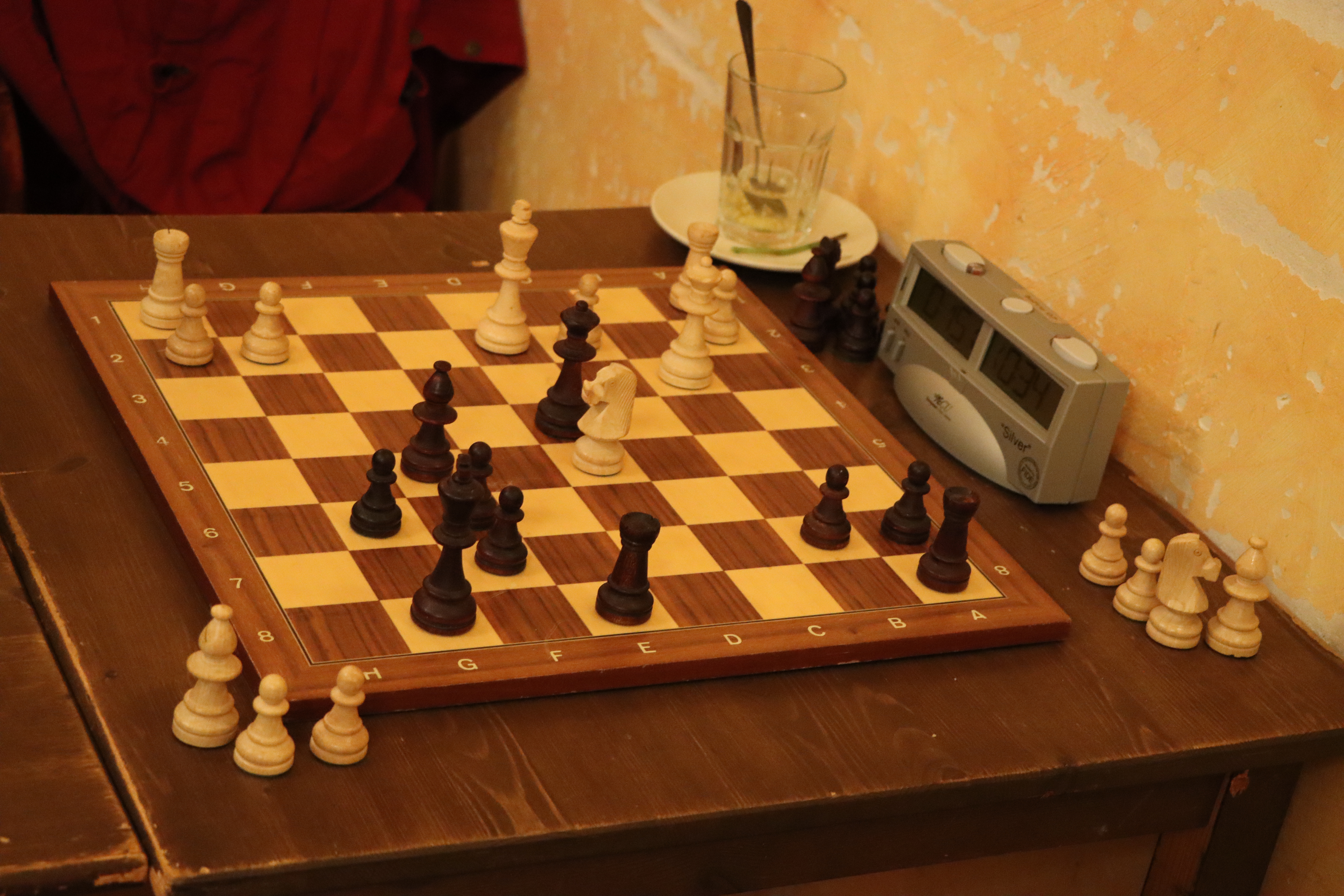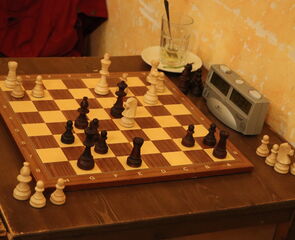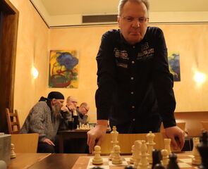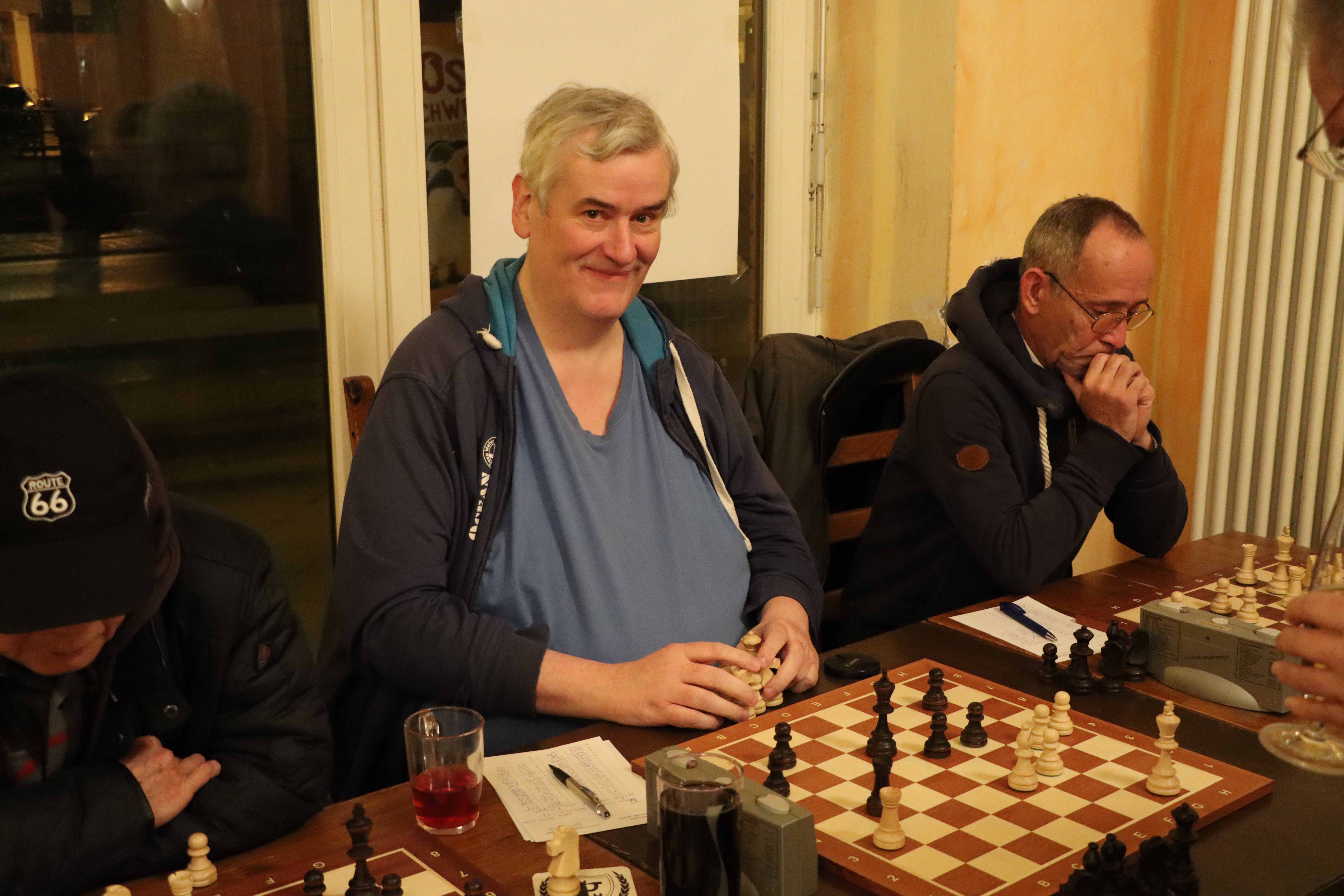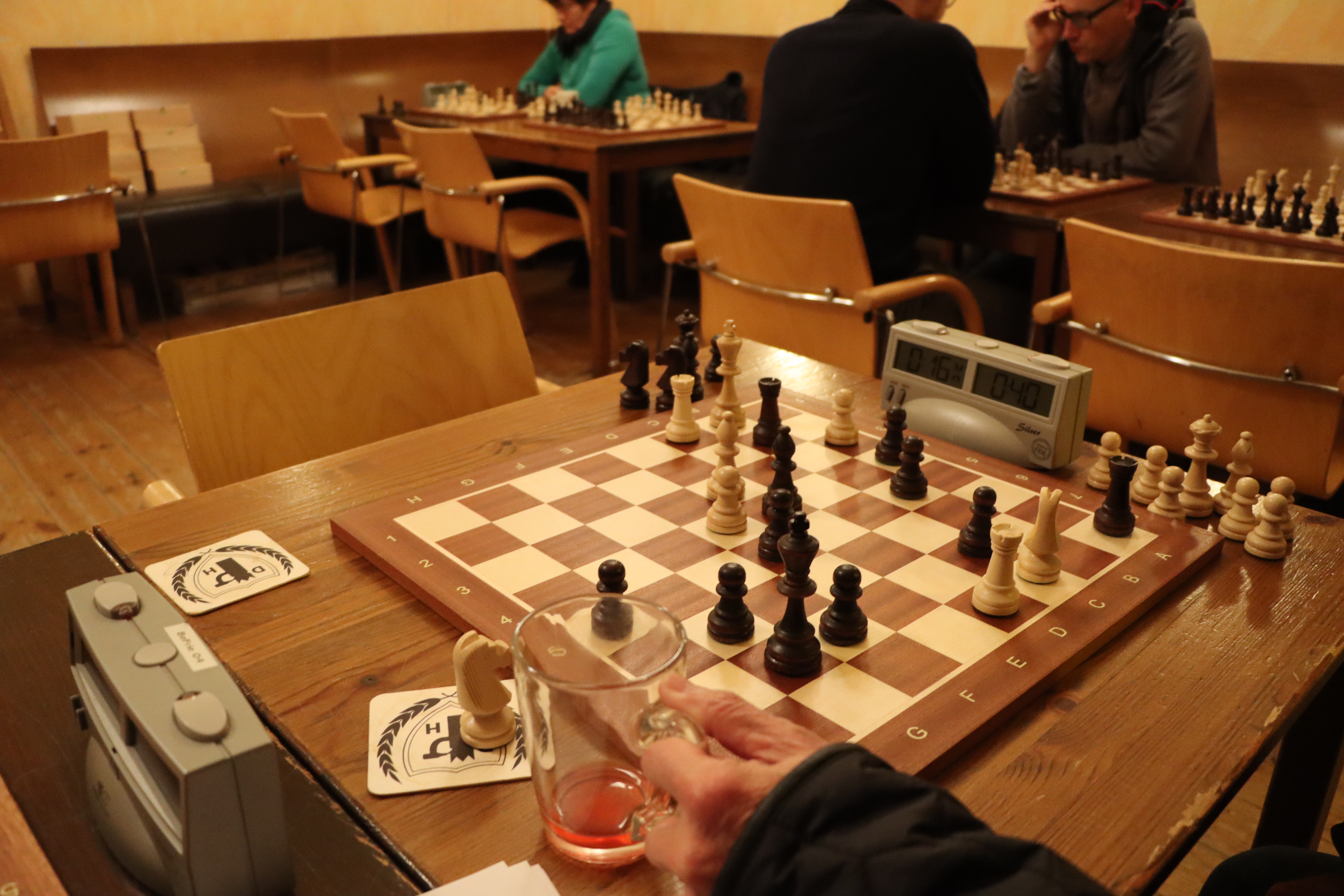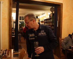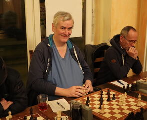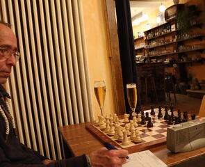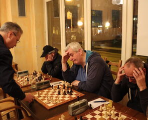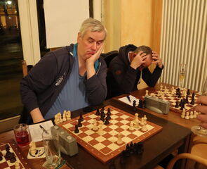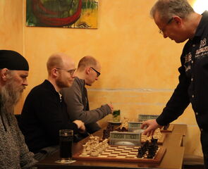 Am heutigen Freitag stellte sich Uwe Sabrowski (DWZ 1915) anfänglich fünf Gegnern, später sieben, im 60-Minuten-Uhrensimultan. Nur einer vermochte ihn zu überwinden: unser mongolischer(?) Gast aus Lichtenberg, der öfter im "En Passant" vorbeischaut. Auch dem Berichterstatter gelang ein kleiner Erfolg, obwohl ich mit DWZ 1963 eigentlich 64 Punkte zuviel hatte. Aber Uwe ließ mich mitspielen und zerstörte mich mit seinem Morra-Gambit. Mit viel Glück rettete ich mich in ein Unentschieden. Eine Punkteteilung wäre auch beinahe Mario Tops gelungen. Am Ende war dies aber einer von sechs Siegen Uwes.